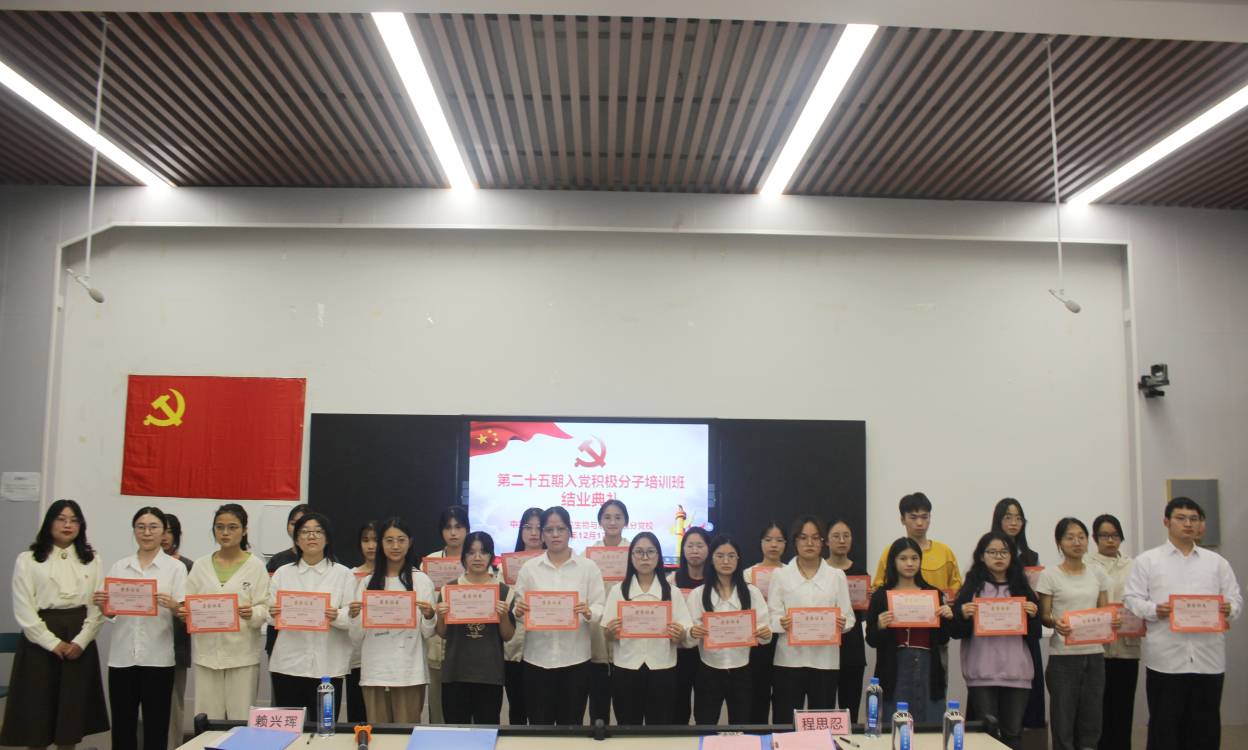 12月12日下午,公司于公司东校区格物楼物理阶梯教室举行第二十五期入党积极分子培训班结业典礼,公司党委书记李国庆、专职组织员赖兴珲、生物科学系员工第二党支部书记出席,第二十五期全体入党积极分子参加。