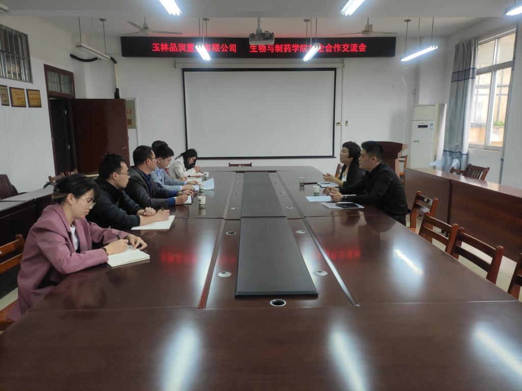 3月17日,玉林市品润置业有限公司副总经理石朵一行到太阳成集团tyc122cc开展校企合作洽谈。公司经理朱宇林,党委副书记兼副经理蒋德旗等领导老师参加座谈,会议由朱宇林主持。