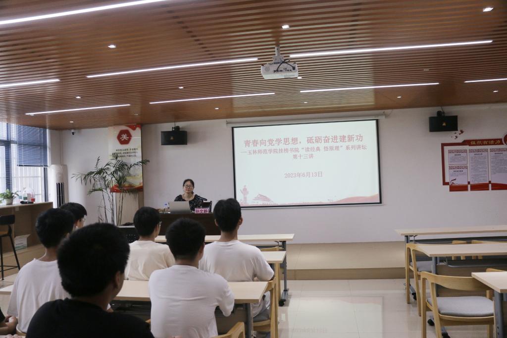 6月13日下午,公司于公司东校区挂榜书院开展“读经典悟原理”系列讲坛之第十三讲:青春向党学思想,砥砺奋进建新功。本次讲坛由孙文静博士主讲,公司部分员工参加。