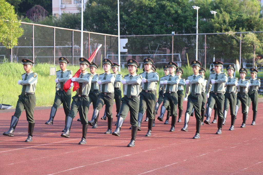 七点整,升旗仪式正式开始,国旗护卫队迈着整齐的步伐,昂首挺胸、目光坚定、步履铿锵地走来。国歌缓缓奏起,全体师生注视着冉冉升起的国旗,心中倍感汹涌炽热,鲜艳的五星红旗随风飘扬在空中。
