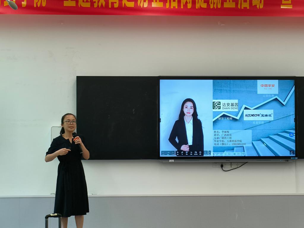 各位优秀员工回顾了在公司学习、生活的美好时光,讲述了自己励志勤学、刻苦钻研、自立自强的学习经历。随后,员工邹芸芸组织观看江苏恒瑞医药股份有限公司宣传视频,并从关于我们、研发体系、人才培养方案、岗位需求等方面进行了宣讲。员工李丽梅、吴海连依次向员工们分享各自工作经历、工作动力和职业感悟,鼓励感兴趣的同学们加入公司团队,共同努力奋斗。