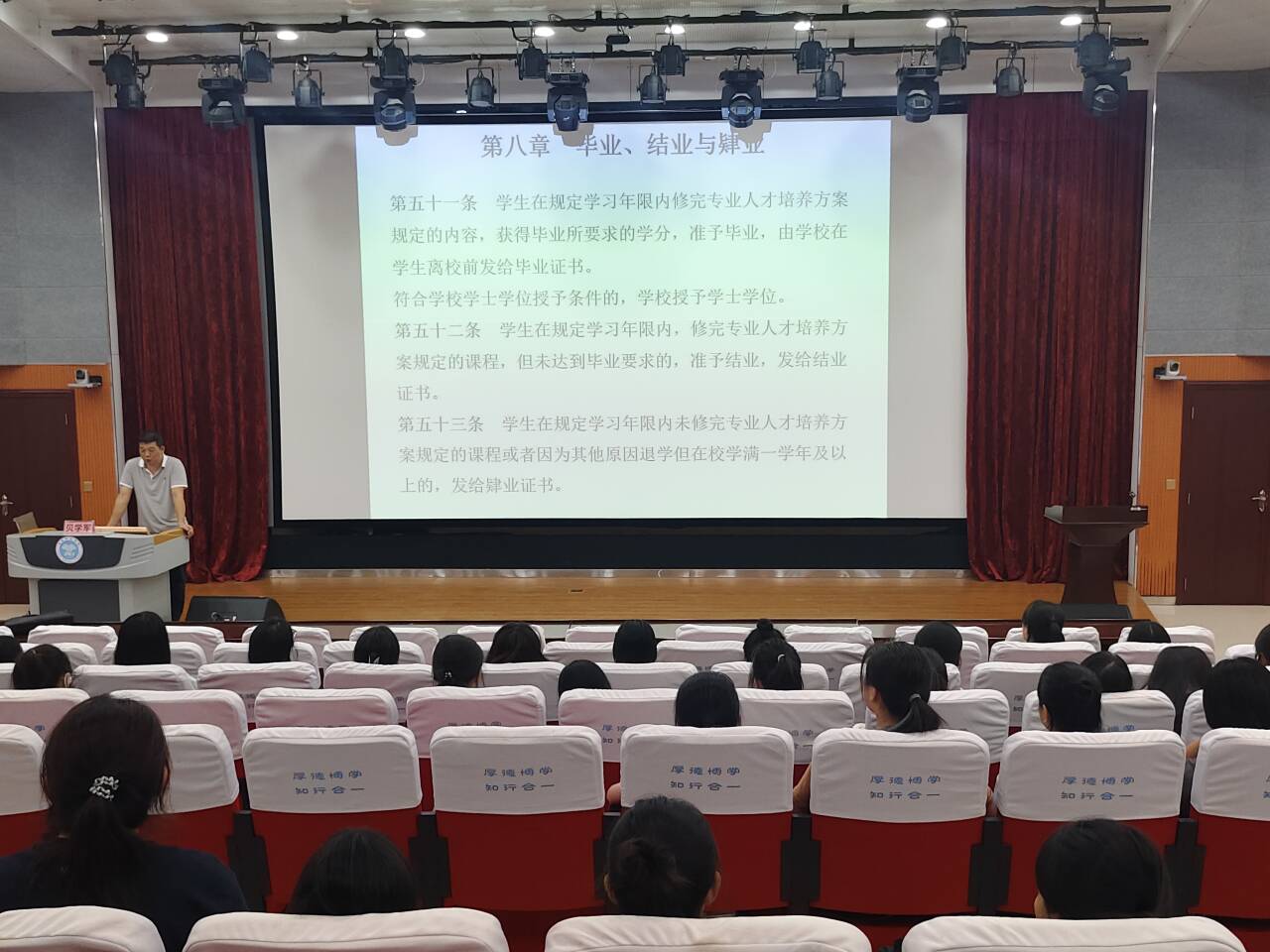 10月17日,公司于公司东校区图书馆视听室举办教学制度与学分制教育讲座。此次讲座由公司副经理贝学军主讲,全体新生参加。