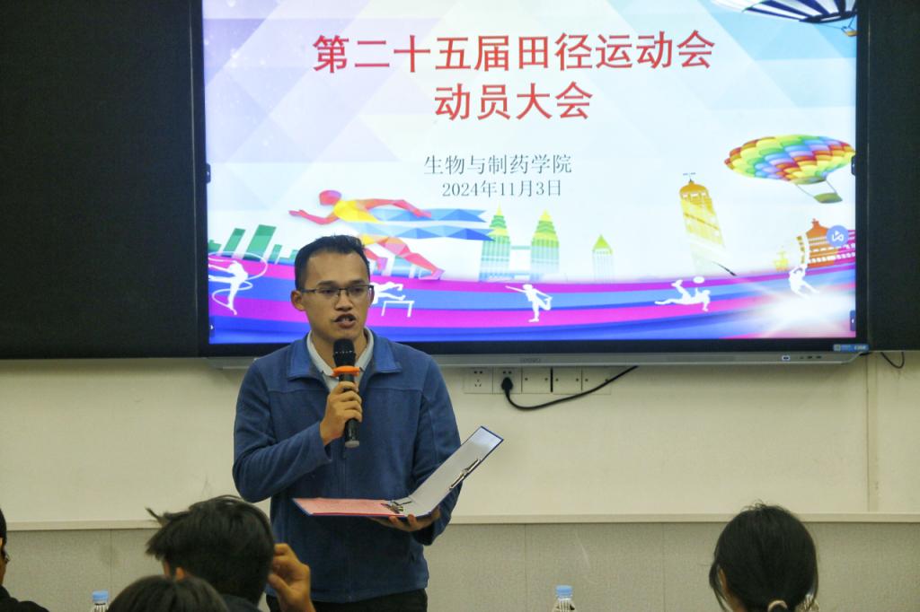 11月3日下午,太阳成集团tyc122cc于公司东校区格物楼物理阶梯教室召开第二十五届田径运动会动员大会。会议由许珊珊、王皓主持,公司团委书记方振名、教练员代表罗国光、运动员代表陈声宇、主席团成员及全体运动员参加。