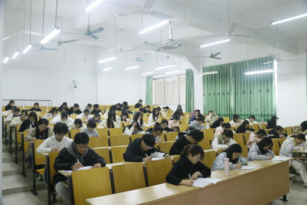 本次知识竞赛主题为“大力弘扬宪法精神,建设社会主义法治文化”,采用纸质答题形式,共设有四十五道选择题,十道判断题,五道多选题,两道简答题。竞赛前,参赛选手有序签名进入考场,并按照监考员的指示整齐入座。临近开考,监考员宣读此次竞赛相关规则和注意事项。竞赛期间,参赛选手认真仔细阅读考题,沉着冷静、专注答题,严格遵守考场纪律,诚信考试;期间,监考员巡视考场,维持考场秩序,确保竞赛的公平性和严谨性。最后,竞赛结束,参赛选手有序上交答卷,监考员收集并清点答卷数量无误后组织考生离场。