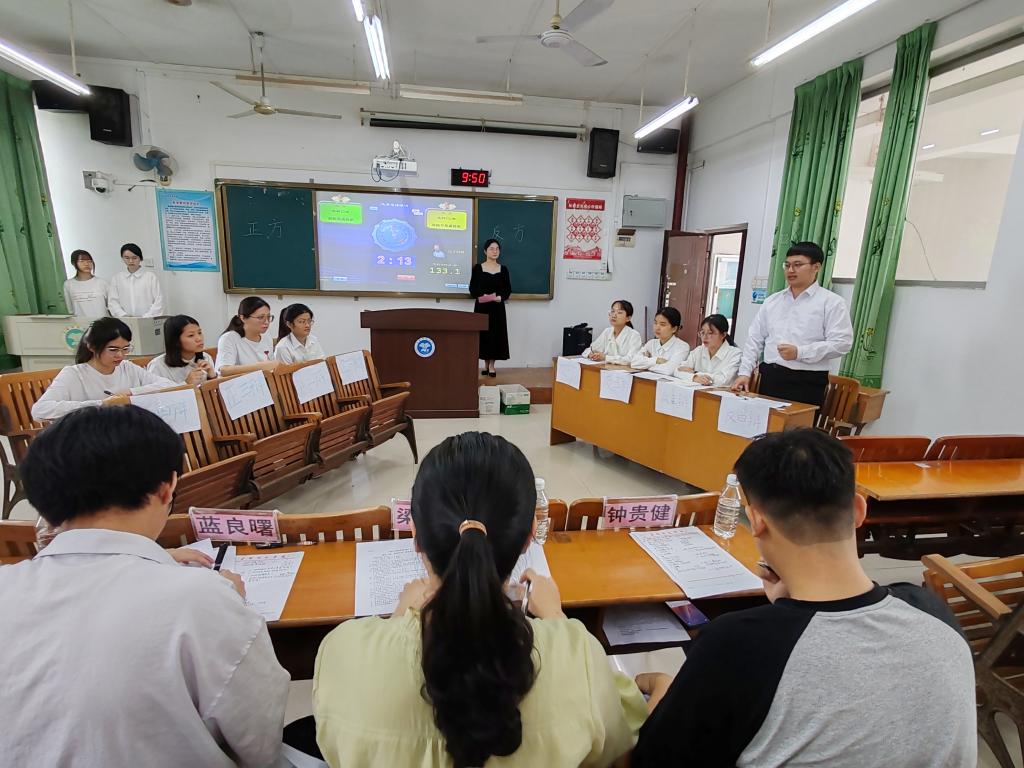 第四场由正方生物科学2023(2)班对战反方生物科学定向2023班,双方围绕“宽松管理对老员工成长利或弊”展开辩论。正方所持观点为宽松管理对老员工成长利大于弊,反方所持观点为宽松管理对老员工成长弊大于利。双方分别按照立论、驳立论、质论、评委提问、自由辩论、总结陈词开展逐层辩论。最后,各评委根据辩手表现进行优缺点分析和辩论建议,并针对细节方面进行辩论指导。