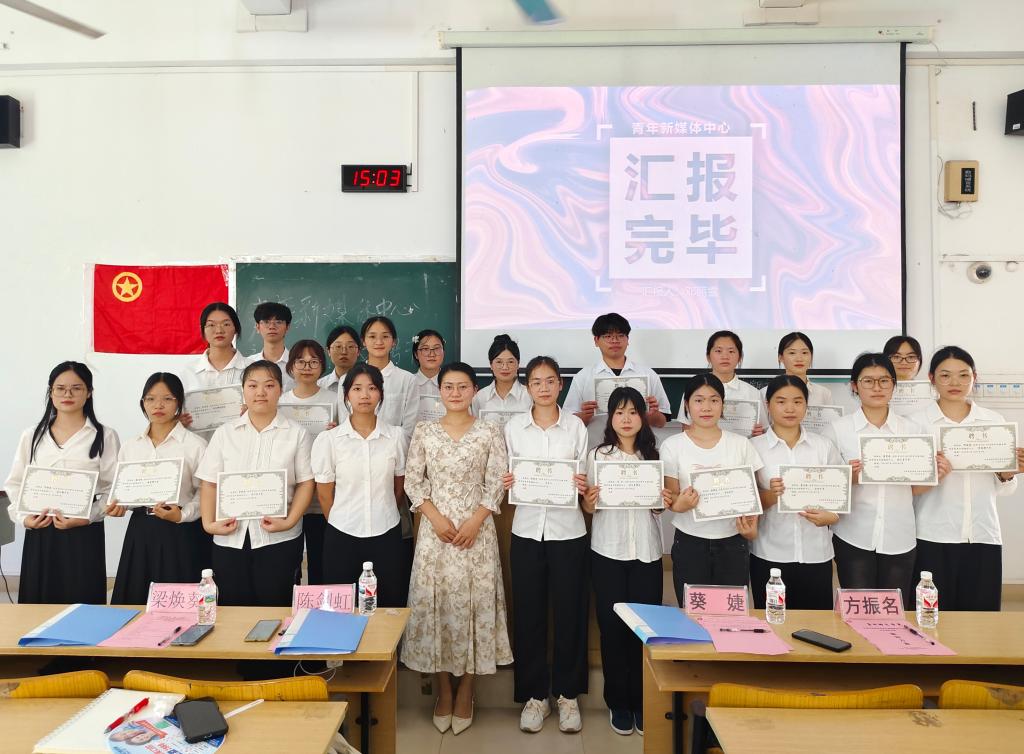 9月3日下午,公司于公司东校区博学楼2-101教室召开青年新媒体中心2023-2024学年述职评优暨聘书颁发大会。会议由廖子媛、杨钊主持,公司辅导员葵婕、主席团成员陈剑虹、梁焕葵及青媒全体成员参加本次会议。