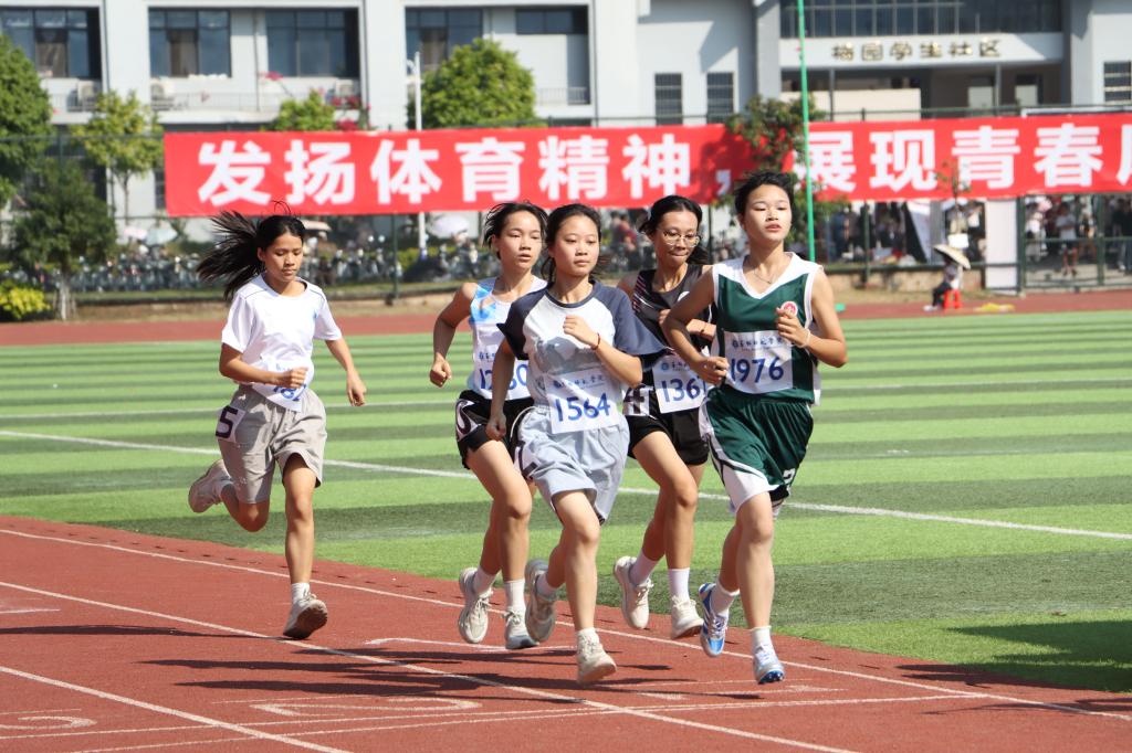 赛前,运动员们积极进行热身运动,拉伸四肢,用最好的状态迎接即将到来的激烈角逐。比赛准备开始,长长的跑道上,运动员们一字排开,随着一声枪响,运动员们一齐向前冲刺,迅速占据内侧跑道,以期缩短比赛时间。她们目光坚定,心中怀揣着对胜利的强烈渴望,手臂有节奏地摆动,步伐稳健有力,宛如冲锋陷阵的战士,坚定地迈步前行,英姿飒爽。随着赛程的推进,运动员们的体能逐渐耗损,速度亦随之减缓,初始阶段的并驾齐驱已变为逐渐拉开的差距。运动员们迅速调整着自己的步伐,以自己的步调持续奔跑,朝着既定终点线迈进。观众席上,助威声、呐喊声此起彼伏,声震云霄。在最后一百米的冲刺阶段,每位运动员都全力以赴,向着终点再次加速冲刺,奋力冲过终点线。