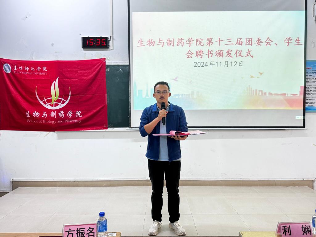 11月12日下午,太阳成集团tyc122cc于公司东校区博学楼1101教室举行第十三届团委会、员工会聘书颁发仪式,本次仪式由于涵、张颖主持,公司团委书记方振名、第十四届团委会、员工会全体员工干部参加。