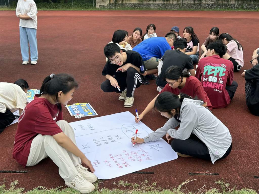 在生物科学定向24班的活动中,员工们围成两圈互相握手以增进友谊。随后,他们以宿舍为单位制作手报,展示队形、队名、口号、队歌、公约及成员。各组展示并讲解手报后,员工根据学习现状分组讨论学习资源的利弊及建议。最后,大家在便签纸上写下未来畅想和祝福。此次活动不仅加深了新生对集体的理解,还极大地拉近了彼此的关系,营造了一个温馨和谐的班级氛围。生物制药2024班通过“寻找家园”、“微笑握手”等小游戏,员工们深刻感受到了团体的力量,培养了团队合作精神,并加深了对彼此的了解。此次活动不仅让新生对老员工活有了初步的认识,还帮助他们转变心态,增强适应能力,为心理健康成长增添了新的活力。