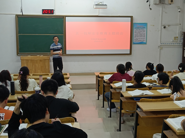 生科定向2022班班主任张克处着重提醒同学们注意五一放假各项事宜。他要求员工们出行谨慎、按时报备、按时返校,并确保安全返校。他强调了电信诈骗和交通安全的注意事项,并呼吁员工们提高警惕,增强个人的安全防范和自我保护意识。针对近期多发的雷雨天气,他特别提醒员工们注意应对台风、雷击、洪水、滑坡、泥石流等自然灾害,并掌握相关的预防知识。